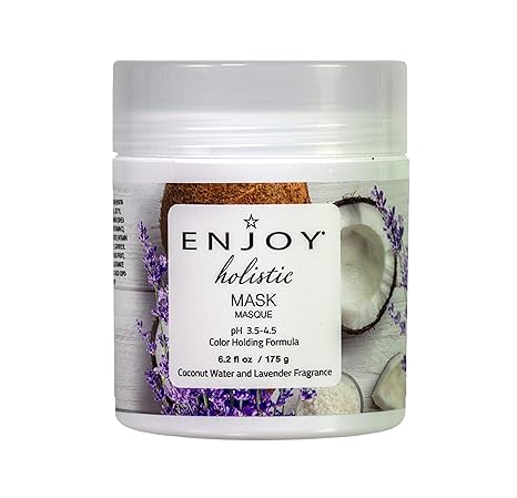 - PREMIUM HAIR MASK: This ENJOY Holistic Hair Mask features a color holding formula and has 3.5-4.5 pH balance. Our Holistic Hair Mask adds incredible moisture, softness and strength to all hair types. Available in bottles of 6.2 Oz. and 33 Oz.