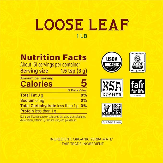 - Includes one (1) 16 ounces bag of tranditional loose leaf yerba mate, 40mg caffeine per serving